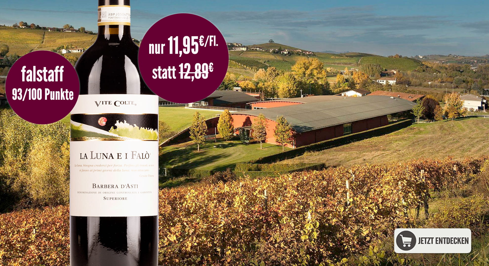 93/100 Punkte 2022er Barbera d'Asti Superiore Luna e i Falo Vite Colte nur 11,95€/Fl., statt 12,89€, 6 Flaschen frei Haus!