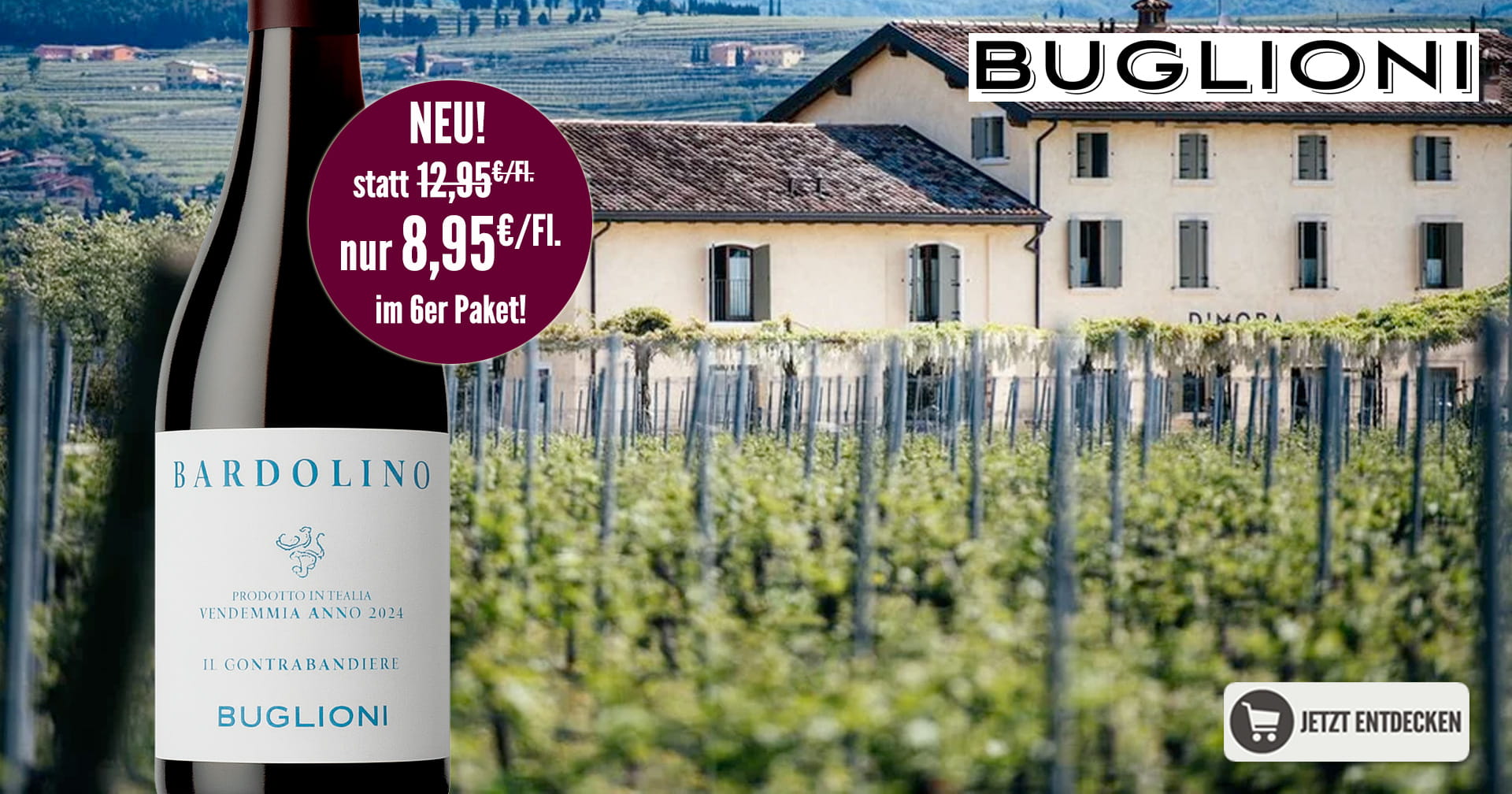Dieser Wein ist ein Paradebeispiel dafür, wie ein ehrlicher und handwerklich gut gemachter Bardolino schmecken sollte. Ein echter "Gontrabandiere" – ein Schmugglertrick für den Gaumen, der die Leichtigkeit des Gardasees direkt ins Glas bringt. Ein Muss für alle, die einen unkomplizierten, aber dennoch charaktervollen Rotwein suchen. Einführungsangebot: 2024er Bardolino Il Gontrabandiere von Buglioni nur 8,95€ statt 12,95€/Fl. im 6er Aktionspaket!