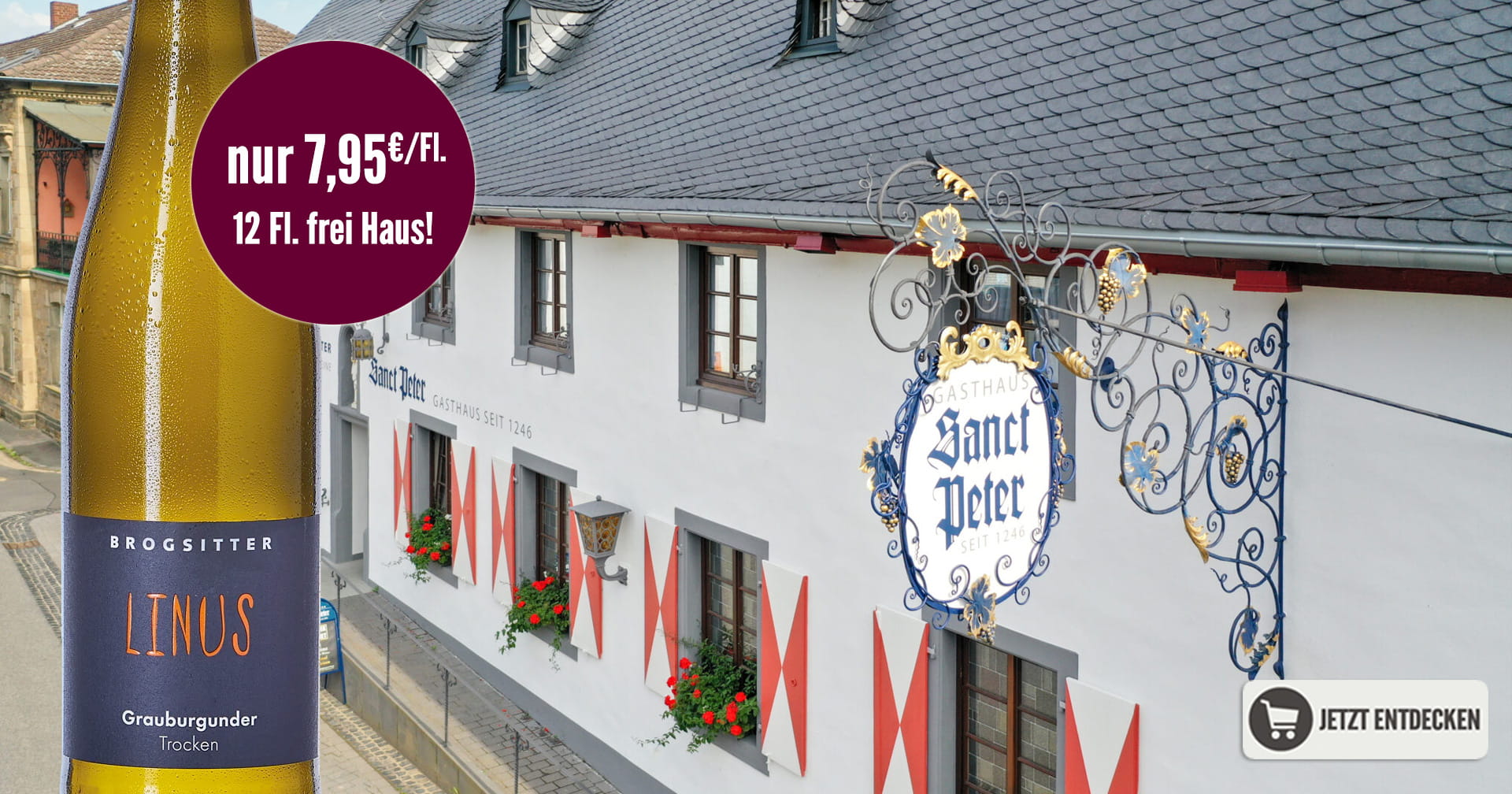 2024er Grauburgunder LINUS - Brogsitter nur 7,95€, 12 Flaschen frei Haus!