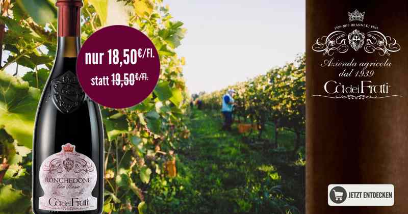 Und in unserer derzeitigen Aktion mit 15,95€ statt 18,95€ ein unschlagbares Angebot! 2021er Ronchedone Ca dei Frati nur 18,50€ statt 19,50€/Fl.